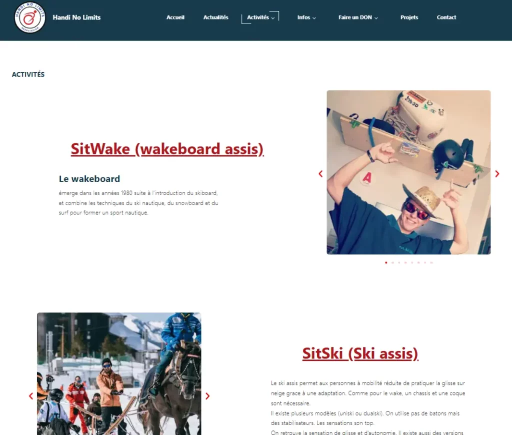 Handi No Limits est une association qui promeut le sport adapté et met en avant différentes activités handisport, des actualités, des projets, ainsi que des informations pratiques autour de l’association. Le site devait présenter cette activité de façon claire, inspirante et structurée, tout en restant simple à maintenir dans le temps.