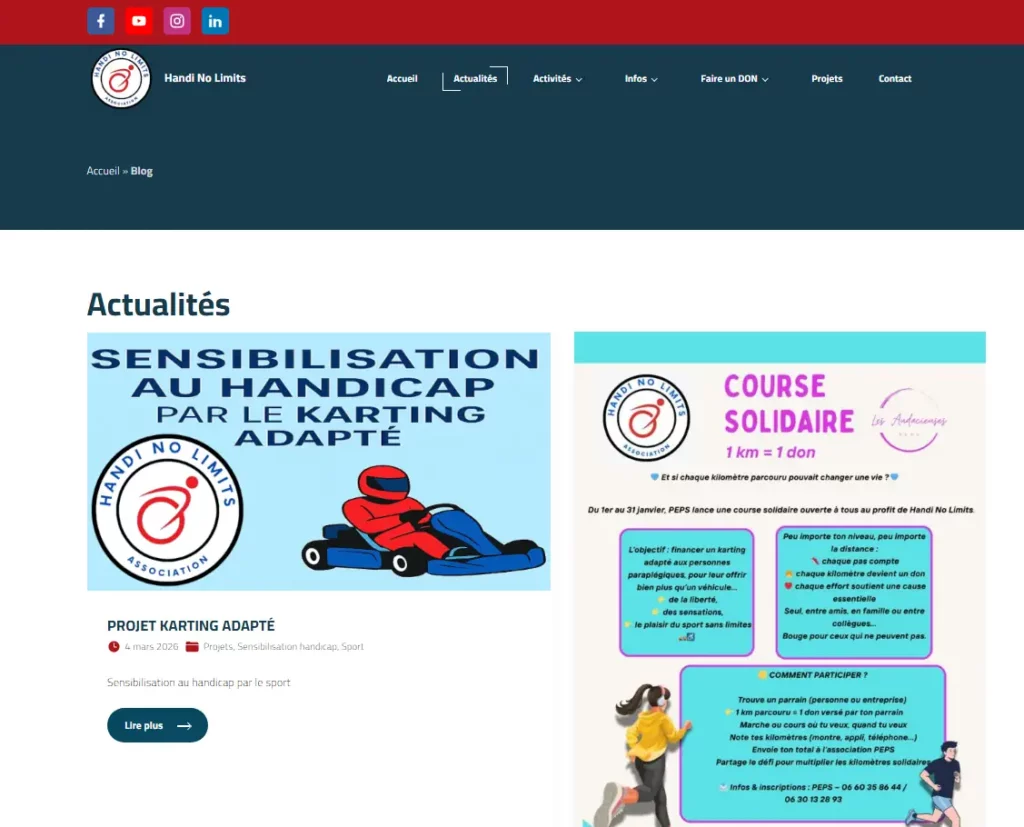 Handi No Limits n’était pas un exercice de style. C’était un projet utile, avec un besoin clair : donner à une association un site crédible, maintenable et accessible, capable d’évoluer sans expertise technique permanente.